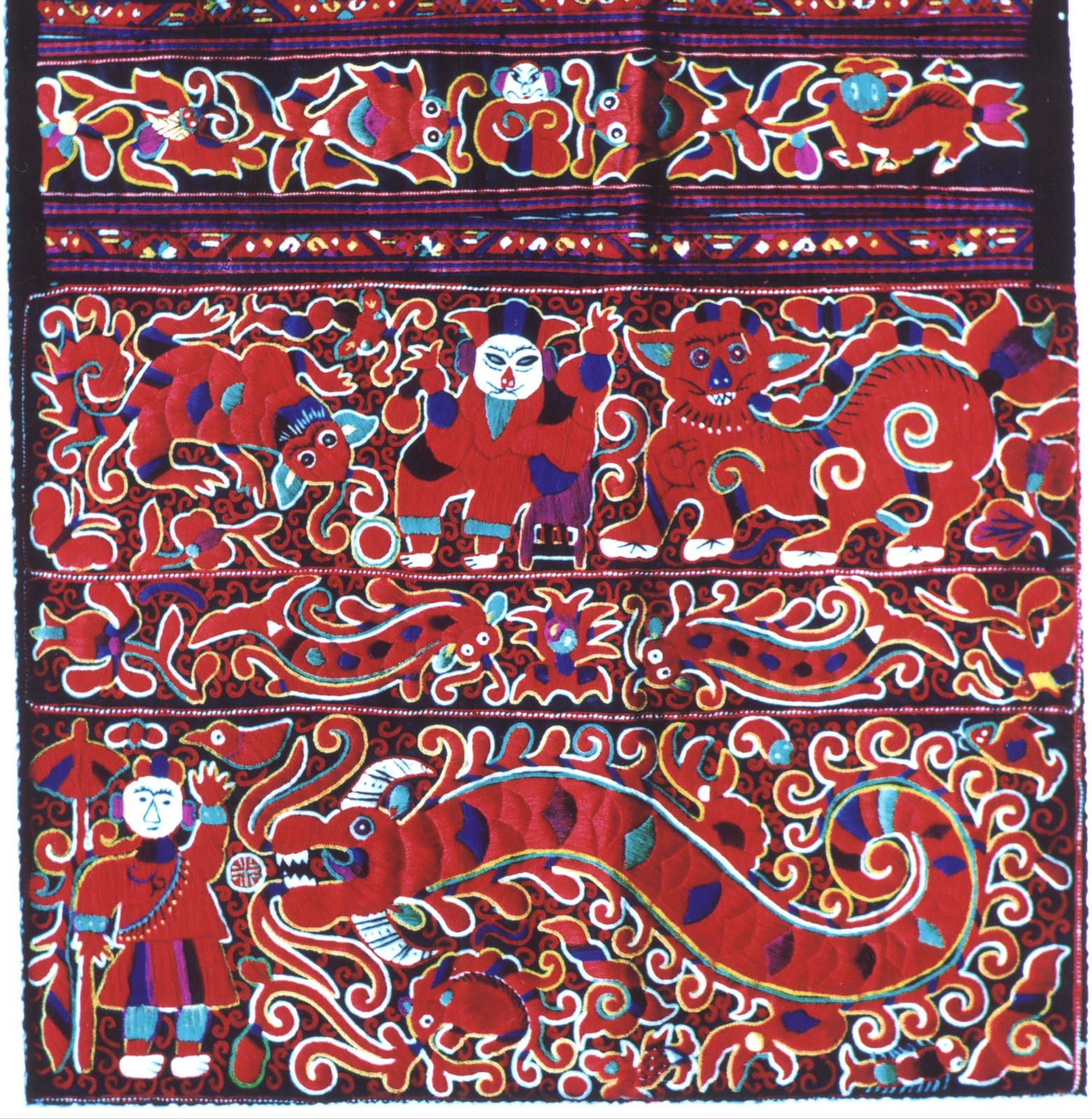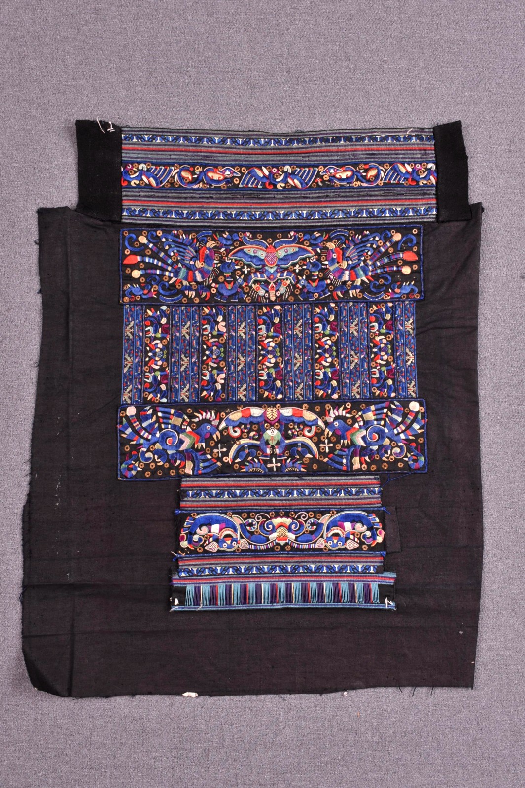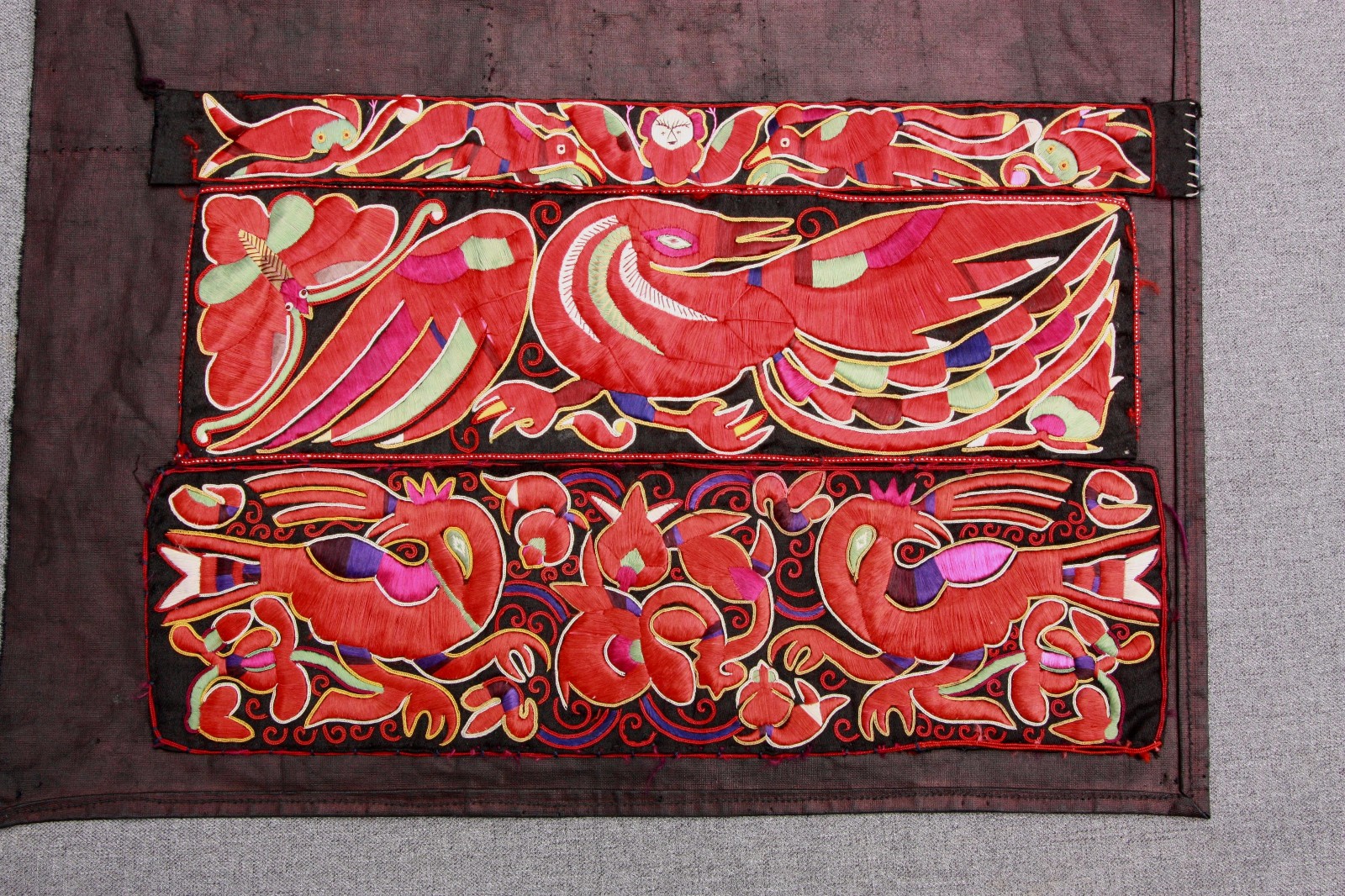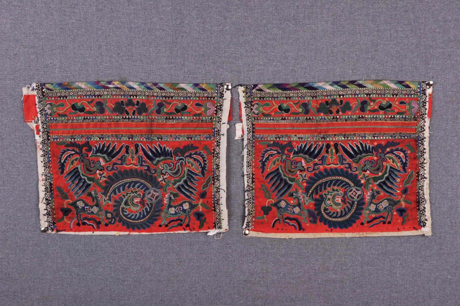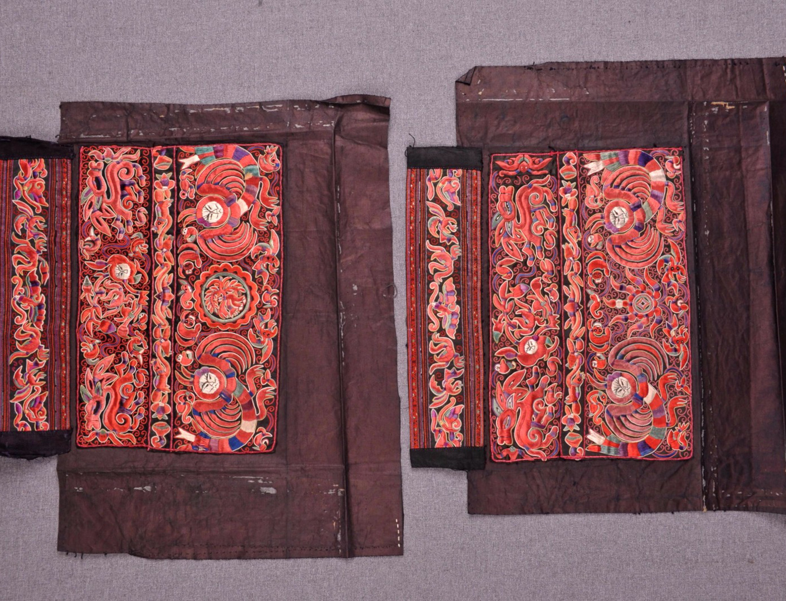 台江苗族皱绣双凤双麒麟蟠龙纹袖片