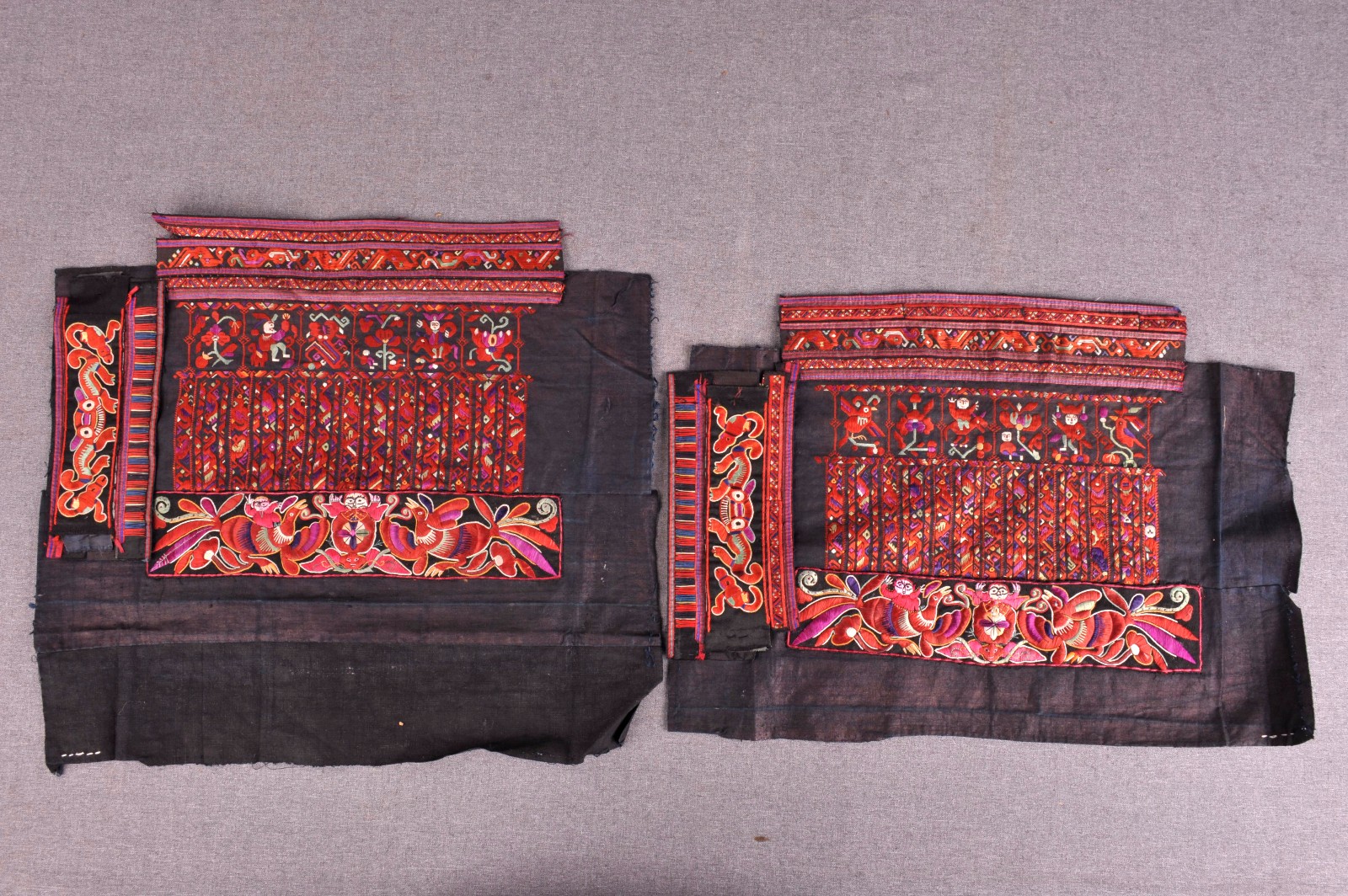 该袖片一对两张,长48CM,宽31CM,征集于台江县,流传于黔东南苗族地区。
