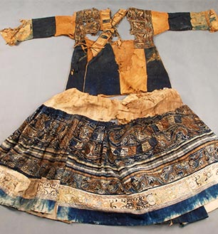 1987年平坝棺材洞出土的这件宋代鹭鸟纹彩色蜡染褶裙。