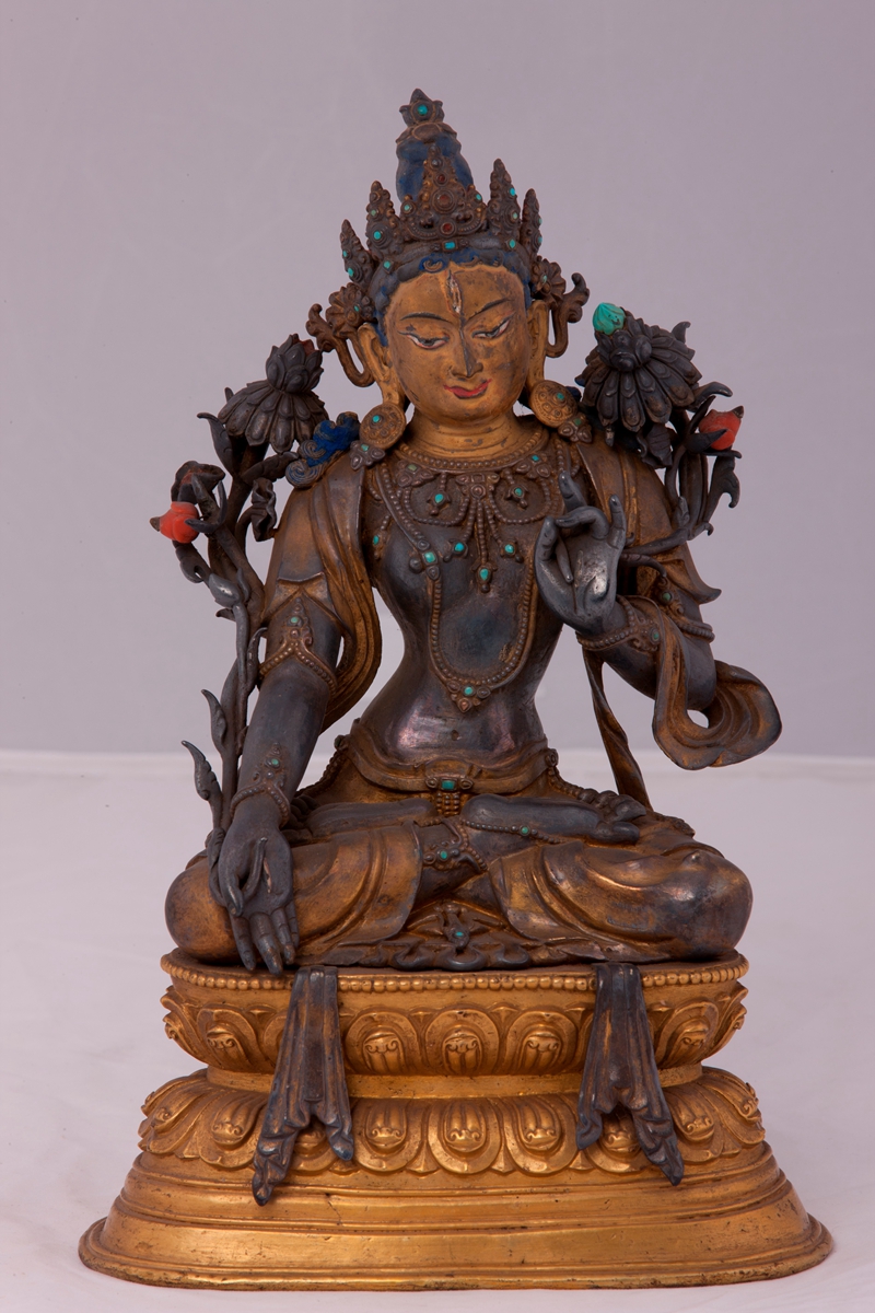 3.10银鎏金嵌松石珊瑚白度母像