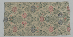图7:英国|粉地独幅花卉建筑纹挖花织物