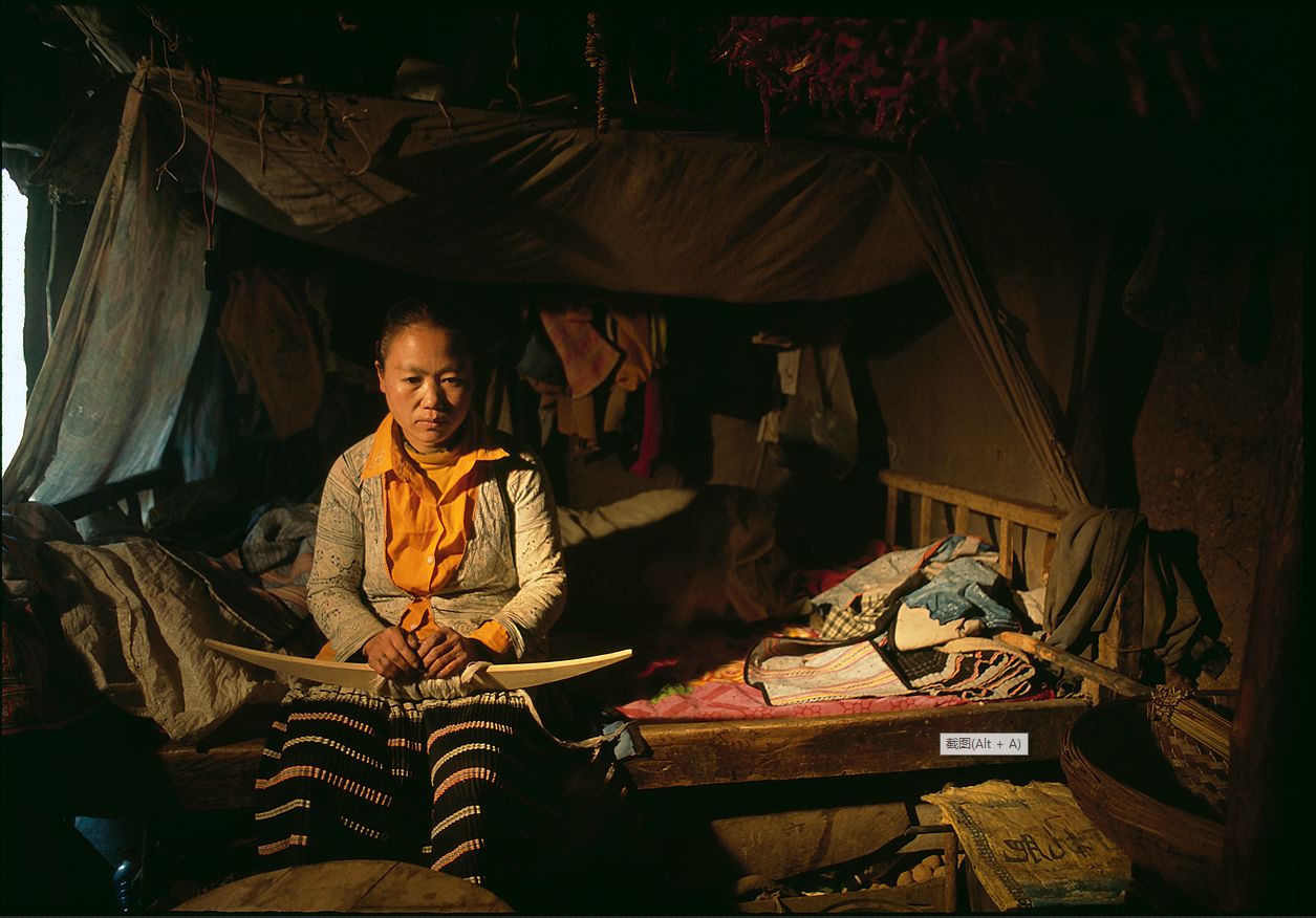 在梭戛,床是家中唯一大件的家具,所有值钱的衣物都放在床上。房间的窗户开得很小,因为它根本就不是窗户,只是一个小洞而已。1997年摄
