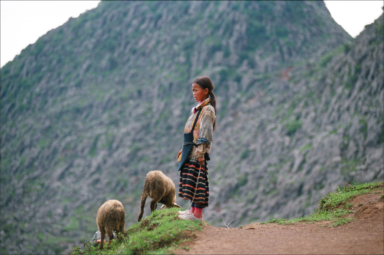 这是1995年杨安迪到梭戛后拍的第一张照片。箐苗小姑娘熊绍珍在村头放羊,阳光洒在她身上。她轻轻挥动着手上的小藤条,眼里充满忧伤地望着远方。 1995年摄