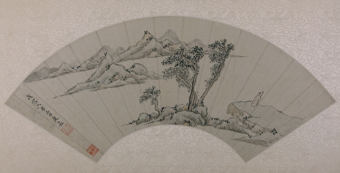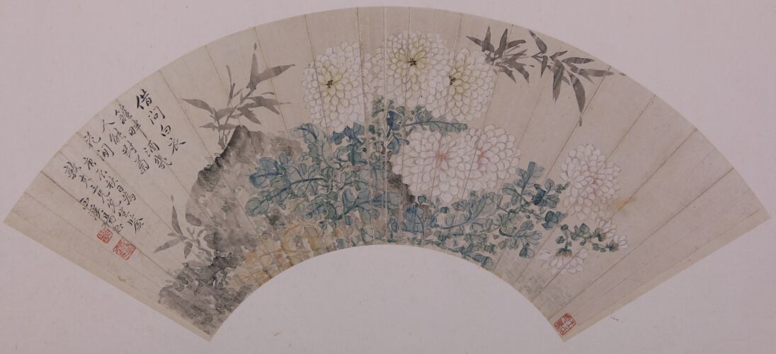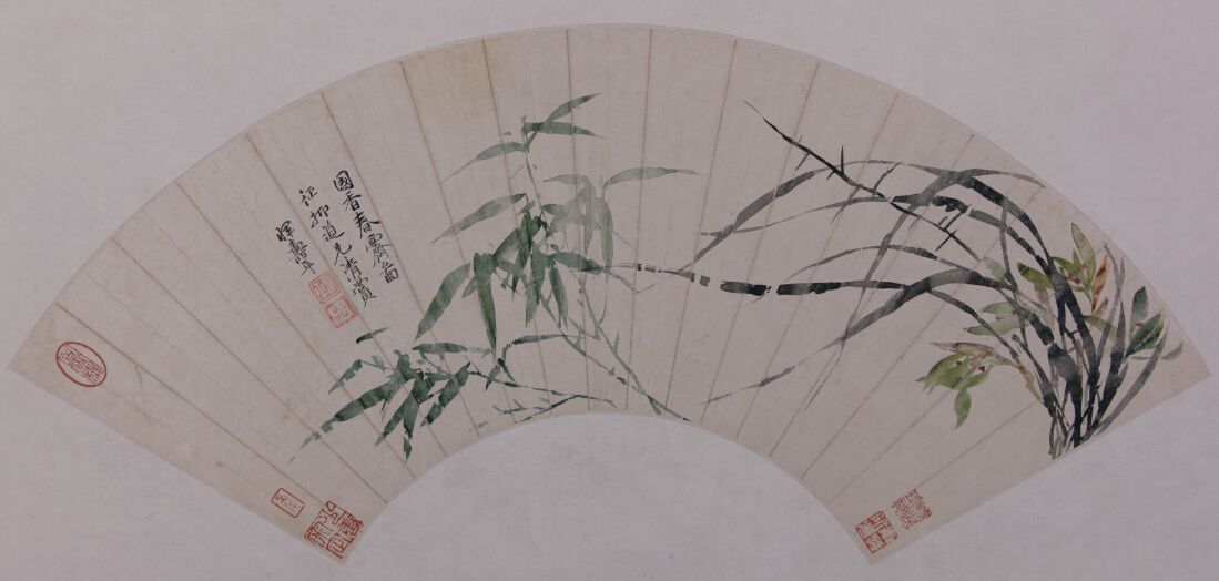 我国的扇子种类繁多,有纸扇、绢扇、葵扇、羽毛扇、竹编扇、麦秸扇等,扇子的形状也有方有圆,还有梅花、海棠、葵花形的。在扇面上题诗作画,是中国扇子独有的一大特色,这也是扇子之所以经久不衰、倍惹人爱的原因。书画扇面虽幅不盈尺,却题材广泛,风格多样,花鸟虫鱼、山水仕女、人物故事、千姿百态,如清人郑绩在《梦幻居画学简明》卷一中所言:“如作雄厚者,尺幅而泰山河岳之势;作淡远者,片纸而有秋水长天之思”。扇面书画由此成为浩瀚中国传统艺术海洋里泛起的经典浪花。