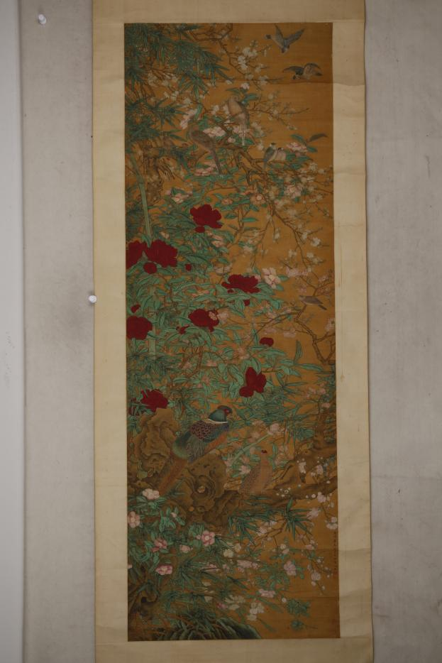 顾见龙 工笔花鸟图轴