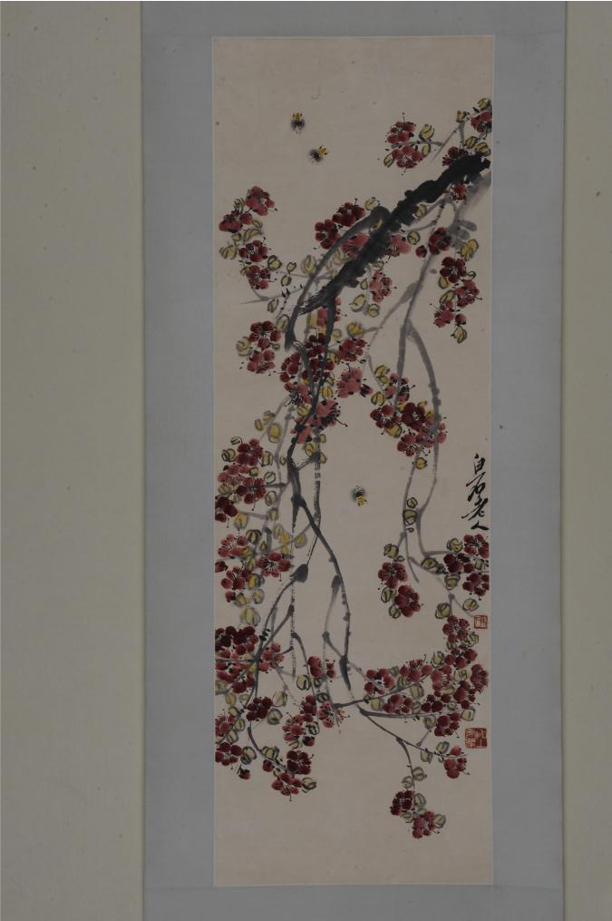 齐白石 红梅游峰图轴